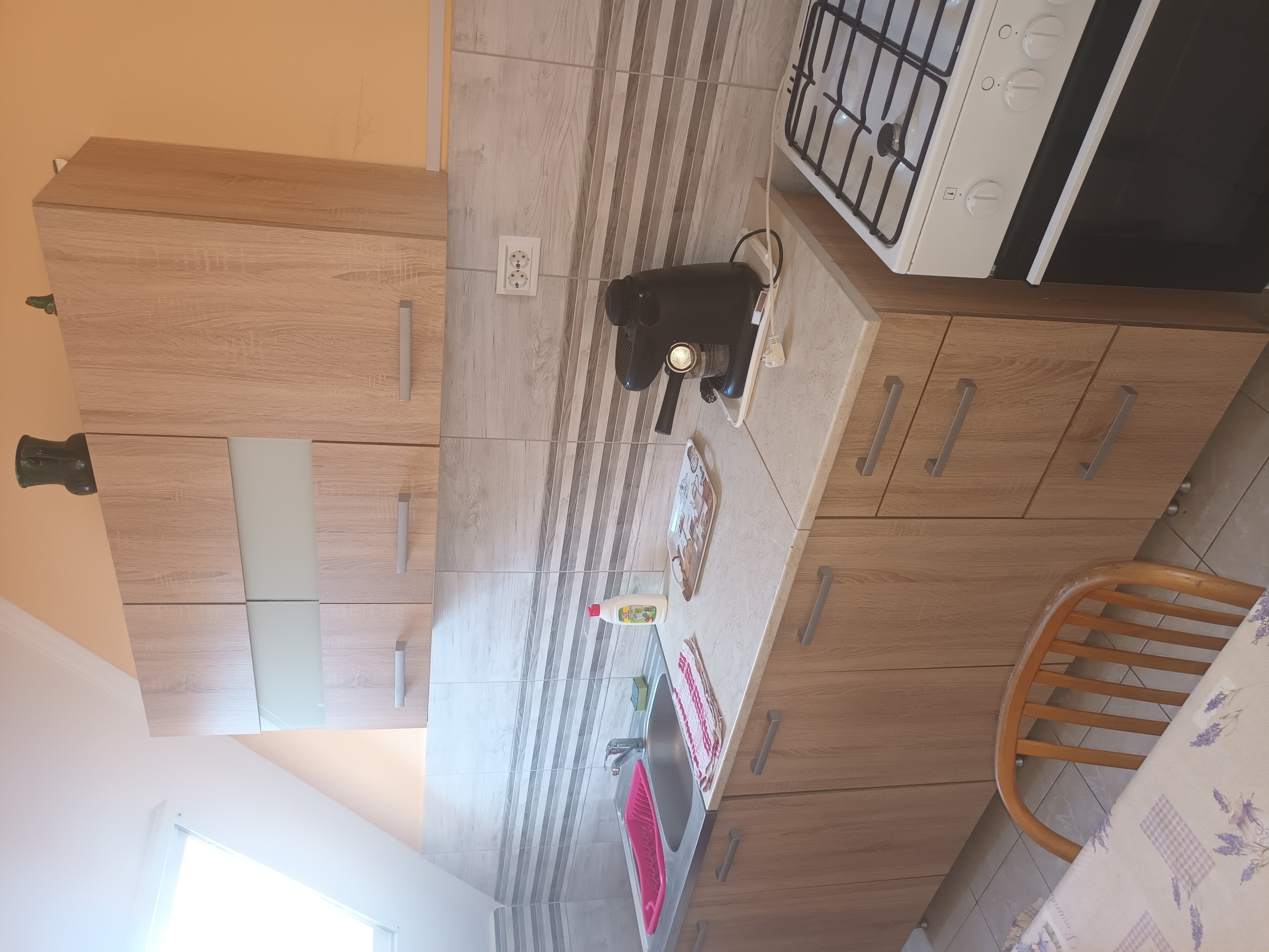 3 fős emeleti légkondis apartman elosztása 2 szoba, konyha, fürdő-wc, terasz